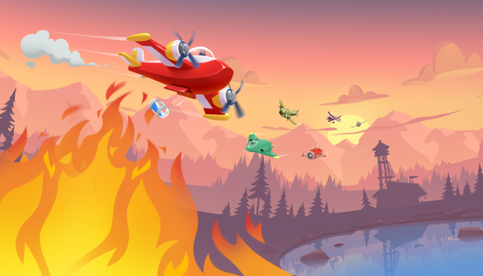 Fly through various dynamically staged environments like burned-out treetops, smoke-filled skies, and rejuvenating lakes. Each level presents a new and unique experience, ranging from firestorms, where the wildfires are developing back row when you are on your back row and limited to narrow canyons with steep walls to fight the flames with no regard for your own safety while knowing your boundaries, straight through to intense and fast wildfires with a courageous sombre note.